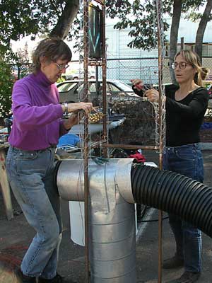 from Sculpture Jam 2003 SEBASTOPOL, CA. Artists, sculptors from West Sonoma County work together to create large public sculptures which are displayed in public places in the Sebastopol area. All are welcome to join in. The jam is a three day event. During the year the sculptors meet monthly to plan to participate in workshops offered by the artists on subjects of interest to sculptors. Workshop topics. Email Warren Arnold for more info. |